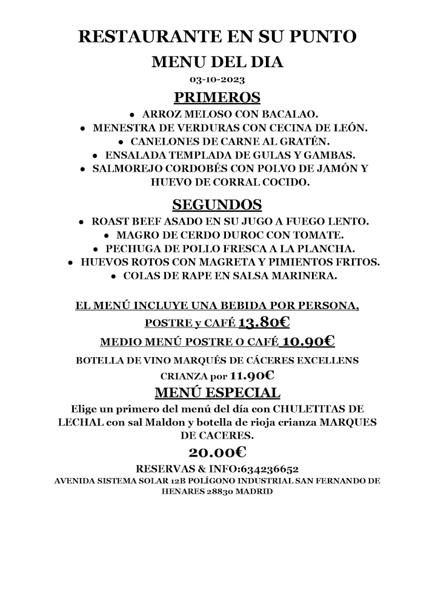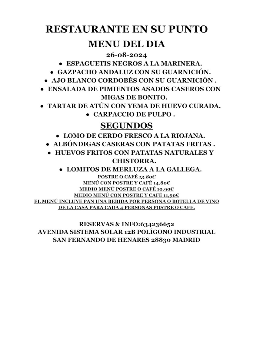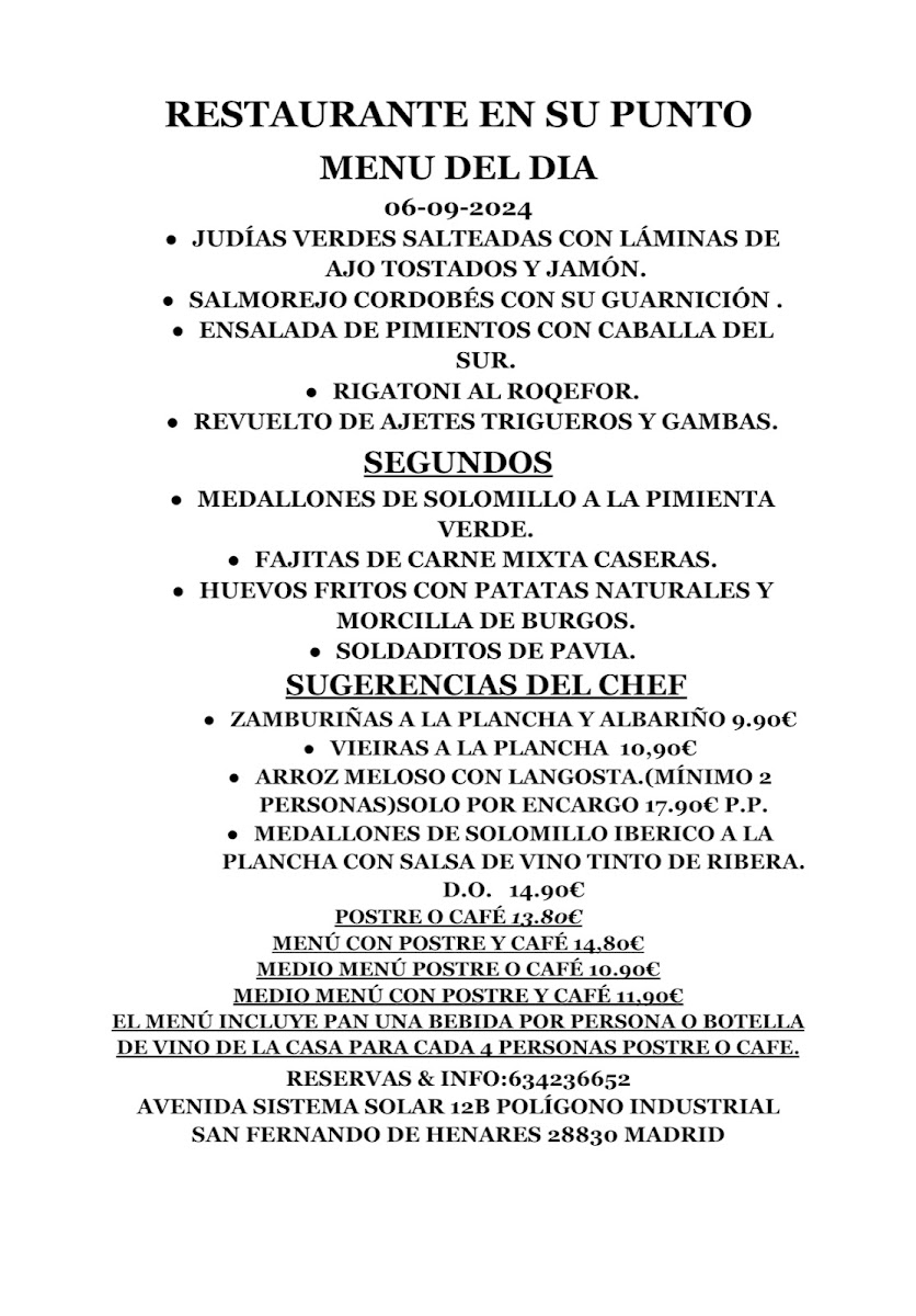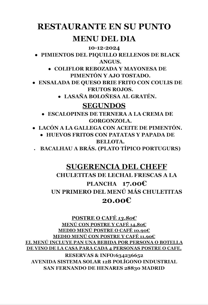 Welcome to EN SU PUNTO, a hidden gem located in Madrid at Av. del Sistema Solar, 12, B. This charming restaurant combines exceptional quality with a cozy ambiance, making it a perfect spot for any dining occasion. The menu features a variety of well-crafted dishes that have garnered rave reviews from patrons.